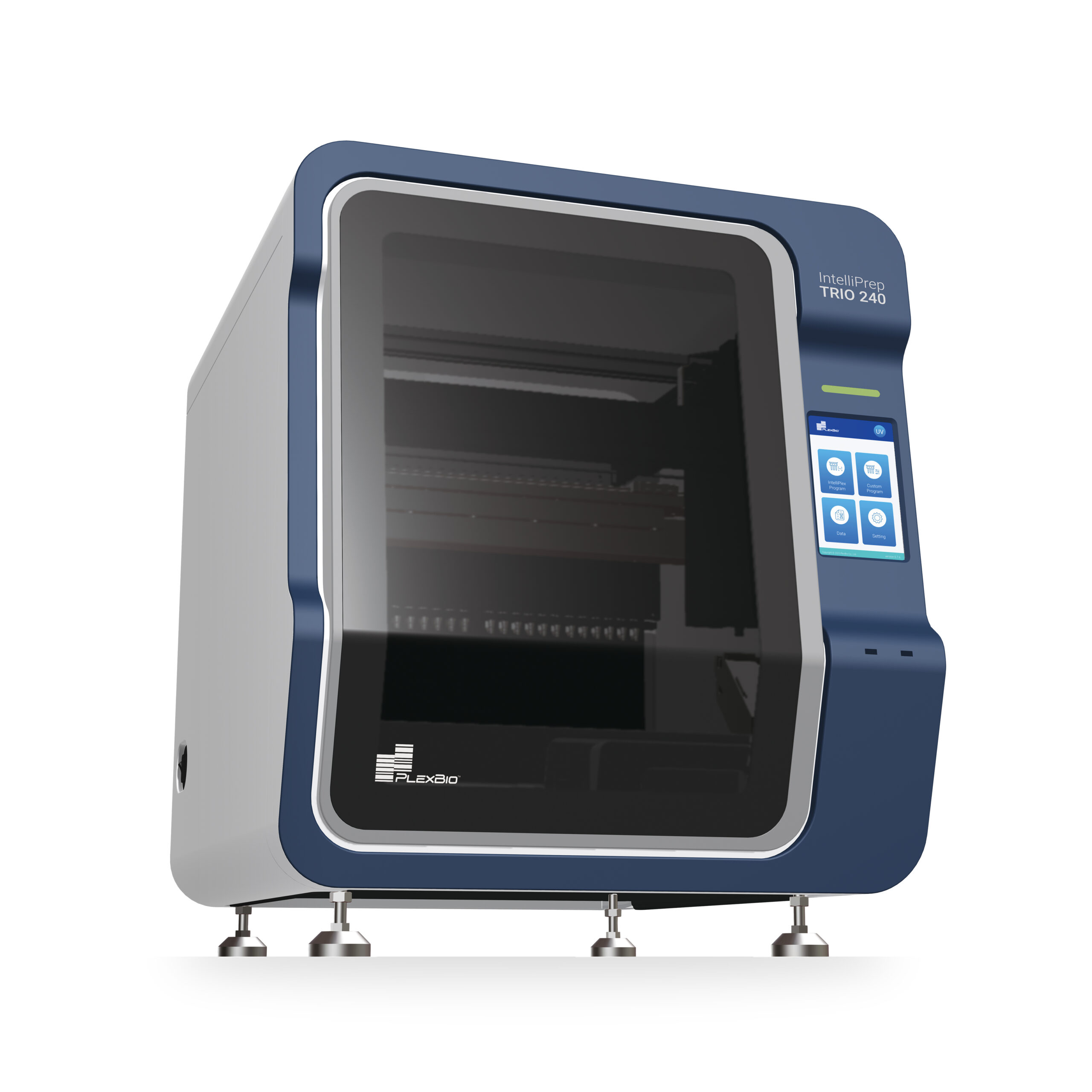 El IntelliPrep TRIO 240 de PlexBio es una solución integral para laboratorios que buscan optimizar sus procesos de diagnóstico molecular. Este sistema automatizado combina tres funciones críticas en una sola plataforma: extracción de ácidos nucleicos, cuantificación de ADN y preparación de placas para PCR, todo en una única corrida sin intervención manual.